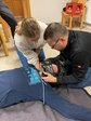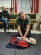 Der Schwerpunkt lag dabei einerseits auf der richtigen Helmabnahme mit anschließender stabiler Seitenlage sowie andererseits auf der Wiederbelebung einer bewusstlosen Person. Die dafür nötigen Reanimationsmaßnahmen konnten dabei an einer Übungspuppe realistisch beübt werden.