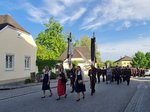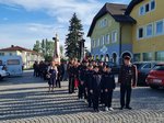Nach einer Messe in der Kirche fand das Niederlegen des Kranzes zum Gedenken an die verstorbenen Kameraden am Feuerwehrdenkmal statt. Musikalisch umrahmt wurde das Florianiamt durch die Ortsmusikkapelle Neukirchen.