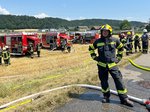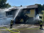 Wir waren mit zwei Fahrzeugen vor Ort. Die Mannschaft des TLFA-B unterstützte die Löscharbeiten sowohl mit einem Atemschutztrupp im Dachboden als auch im Außenangriff.