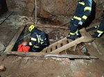 Mit Zuhilfenahme von Tragetuch, Schaufeltrage und Arbeitsleinen zum Hochziehen konnten schließlich beide bewusstlosen Personen gerettet werden.