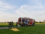 Bei unserer Monatsübung am 07.08.2025 lautete der Alarmtext "Verkehrsunfall mit eingeklemmten Personen und Verdacht auf Fahrzeugbrand mit Ausbreitungsgefahr auf Gebäude".