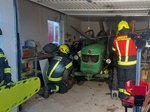 Die Mitglieder der Feuerwehren Neukirchen und Mitternberg mussten hierbei eine verunfallte Person unter einem Traktor befreien. Erschwert wurde dies durch eine eingestürzte Garagendecke.