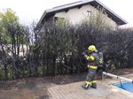 Sofort wurden beide HD-Schnellangriffseinrichtungen bereitgestellt und unter Atemschutz mit dem Schützen der Hütte und dem Löschen der Hecke begonnen.