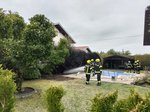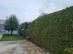 Rasch wurde mit dem Tanklöschfahrzeug ausgerückt. Während der Anfahrt zum Einsatzort rüstete sich ein Atemschutztrupp aus. Bei der Lageerkundung durch den Einsatzleiter konnte festgestellt werden, dass eine Hecke auf ca. 15 Metern Länge in Brand stand und ein Übergreifen der Flammen auf eine angrenzende Gartenhütte drohte.