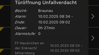 Am Vormittag des 10.02.2025 wurden die Feuerwehren Neukirchen und Mitternberg zu einer Türöffnung alarmiert.