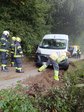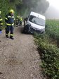 Vor Ort zeigte sich, dass ein Lieferwagen auf einer Schotterstraße von der Fahrbahn abgekommen war und in Schieflage Richtung tiefer gelegenem Feld feststeckte. Der Fahrer des Wagens war bereits aus dem Fahrzeug ausgestiegen.