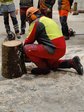 Im darauffolgenden Praxisteil konnten die Schulungsteilnehmer verschiedene Schnitt- und Fälltechniken ausprobieren und an einem Holzverspannungssimulator realitätsnah beüben.
