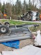 An der Unfallstelle wurde ein Transporter seitlich liegend auf der Straße vorgefunden, der Anhänger lag im Feld nebenan.